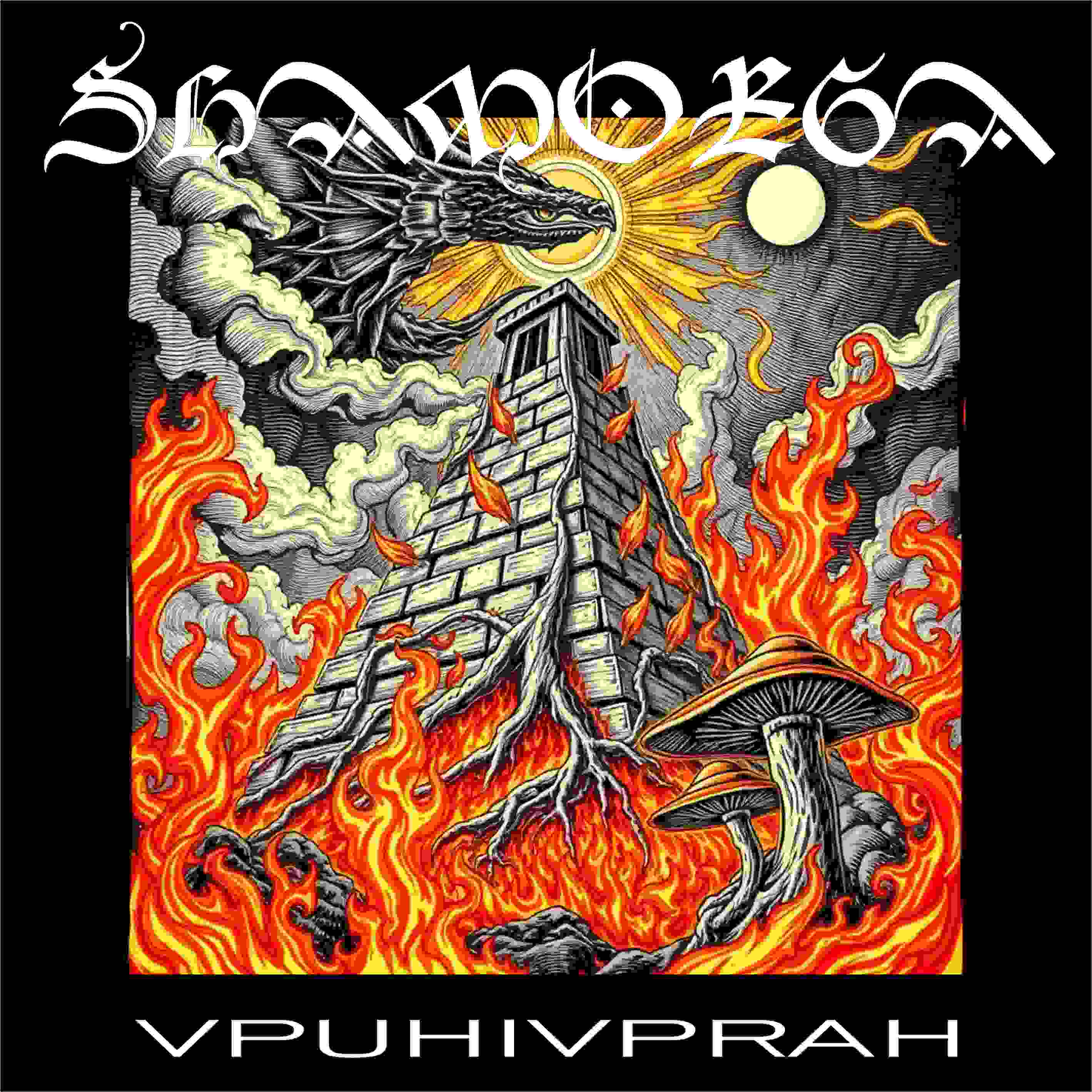The EP opens with “TLEN“, the longest track. There, brittle acoustic notes dismally mourn in front of gnarled droning tones that would resemble throat-singing if made by a throat. Those deeper tones are scary as they slowly writhe and gouge, and the others become scary too as the performer begins to slash the chords and cause the bass frequencies to throb.But the really scary stuff is yet to come. The music frightfully yowls above thumping beats, and it sounds like a cacophony of vicious voices are all being strangled. Those yowling emissions contort; the drums thump more vigorously; the voices screech and scream; shrill frequencies quiver. The drums and other instruments also maniacally hammer and feverishly convulse, but the mood at the end feels like terrible agony.“V PUH” comes next. It’s also unpredictable, also unsettling. The music sizzles and throbs, eerily wails and viciously jolts, venomously slithers and injects martial beats, sounds brazen and sounds diseased, and something like a siren miserably squirms. The vocals are no more sane or pleasant than before, but grim growls have a greater role and something less ugly briefly speaks at the end.Third in the list is “I V PRAH“. You might feel like bouncing to this one, but the bobbing grooves are also vanquished by blasting and booming percussion. The music is elaborate madness. Sometimes it feels like an ecstatic rave or an infernal calliope, but also like a psychedelic meltdown. It urgently thrusts and vibrantly darts but also boils and burns. A chorus of crocodiles might be expressing their pleasure, or displeasure.“V PEKLO” comes last. If you’ve made it this far, if your sanity is still intact and your patience hasn’t been exhausted, you can expect more of the same. Your mind will be boggled one more time, and hopefully fascinated one more time by the song’s labyrinthine warping and weaving. Your sinews might get triggered as well.The EP is most definitely a weird and strangely rapturous experience. Maybe only weird and strangely rapturous minds will appreciate it. Our maybe I should just speak for myself!Shamorga is the solo project of Wolos. It was released in late February by Unholy Icon.https://shamorga.bandcamp.com/album/vpuhivprah
